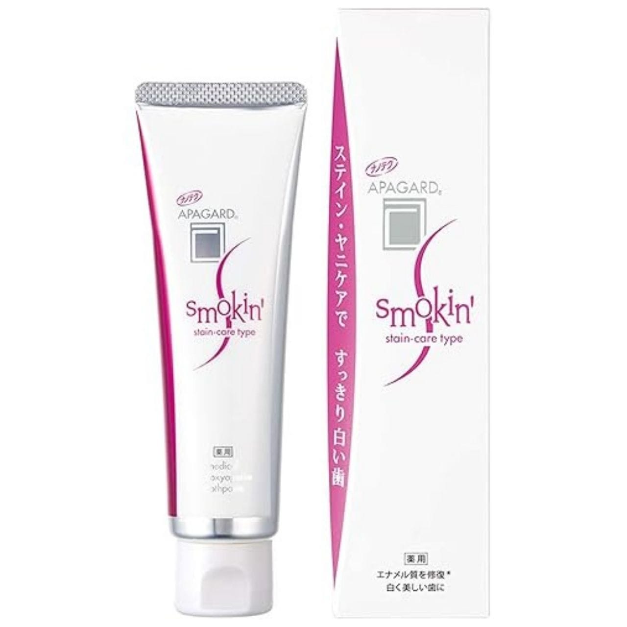 Japanische Zahnpasta mit doppeltem Fleckenentfernungssystem und Hydroxylapatit. Metaphosphat und Natriumcitrat entfernen effektiv hartnäckige Verfärbungen, während Perlenextrakt die Zähne aufhellt. Zarter Jasmin-Minz-Geschmack.