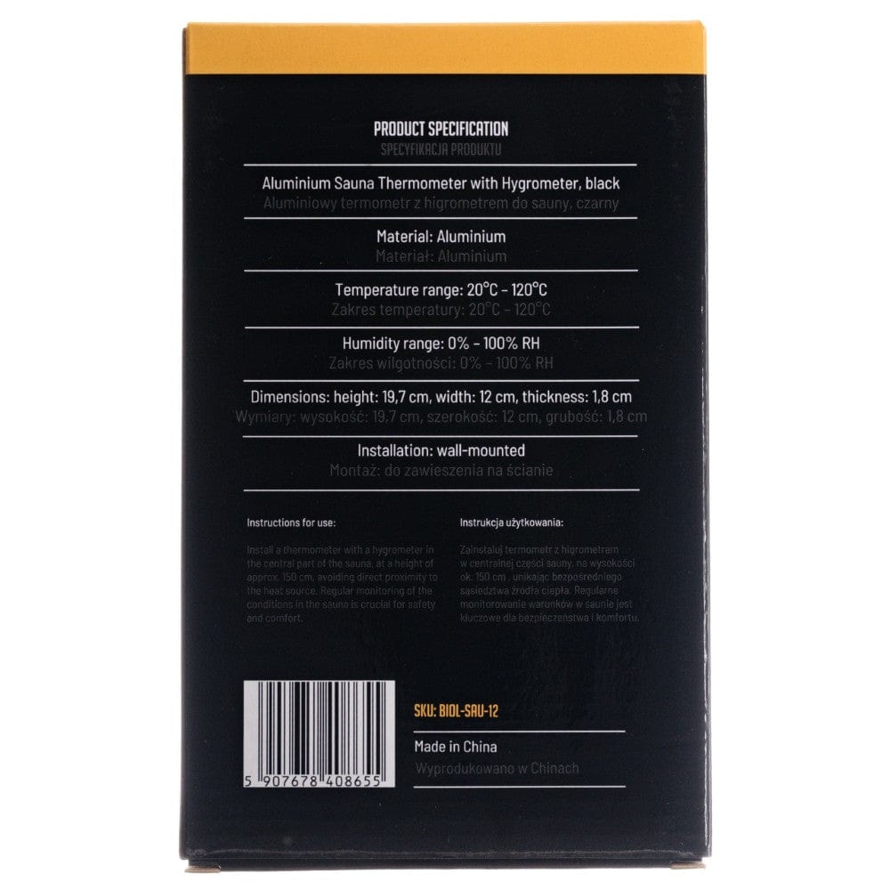 Bilovit Saunathermometer mit Hygrometer – Schwarzes Aluminium