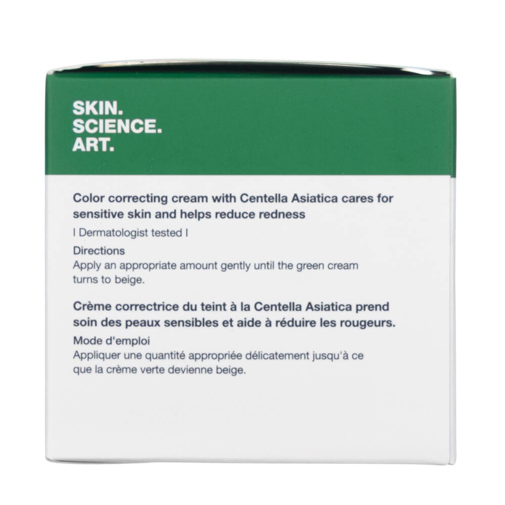 - Eine kleine Menge der Creme in den Handflächen, erwärmen und dann sanft auf die Haut drücken und verteilen. Die Creme verfärbt sich von grün nach beige, gleicht den Hautton aus und neutralisiert Rötungen.