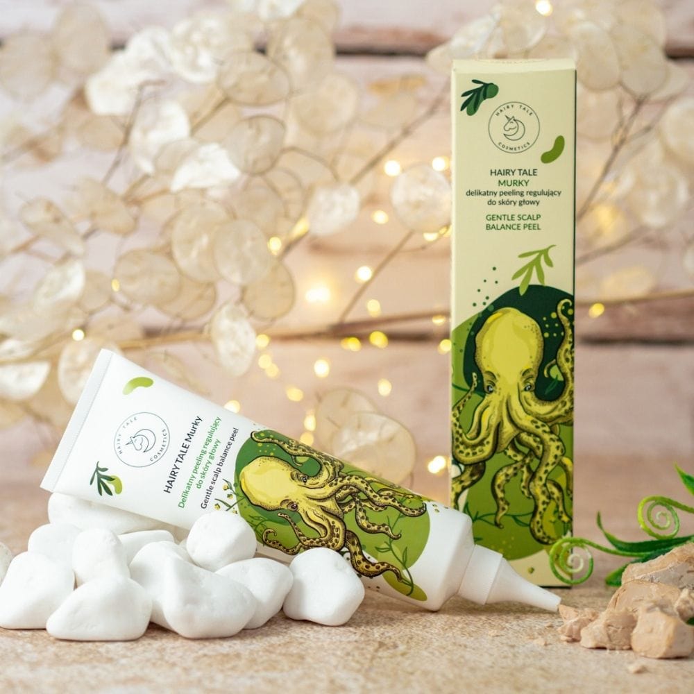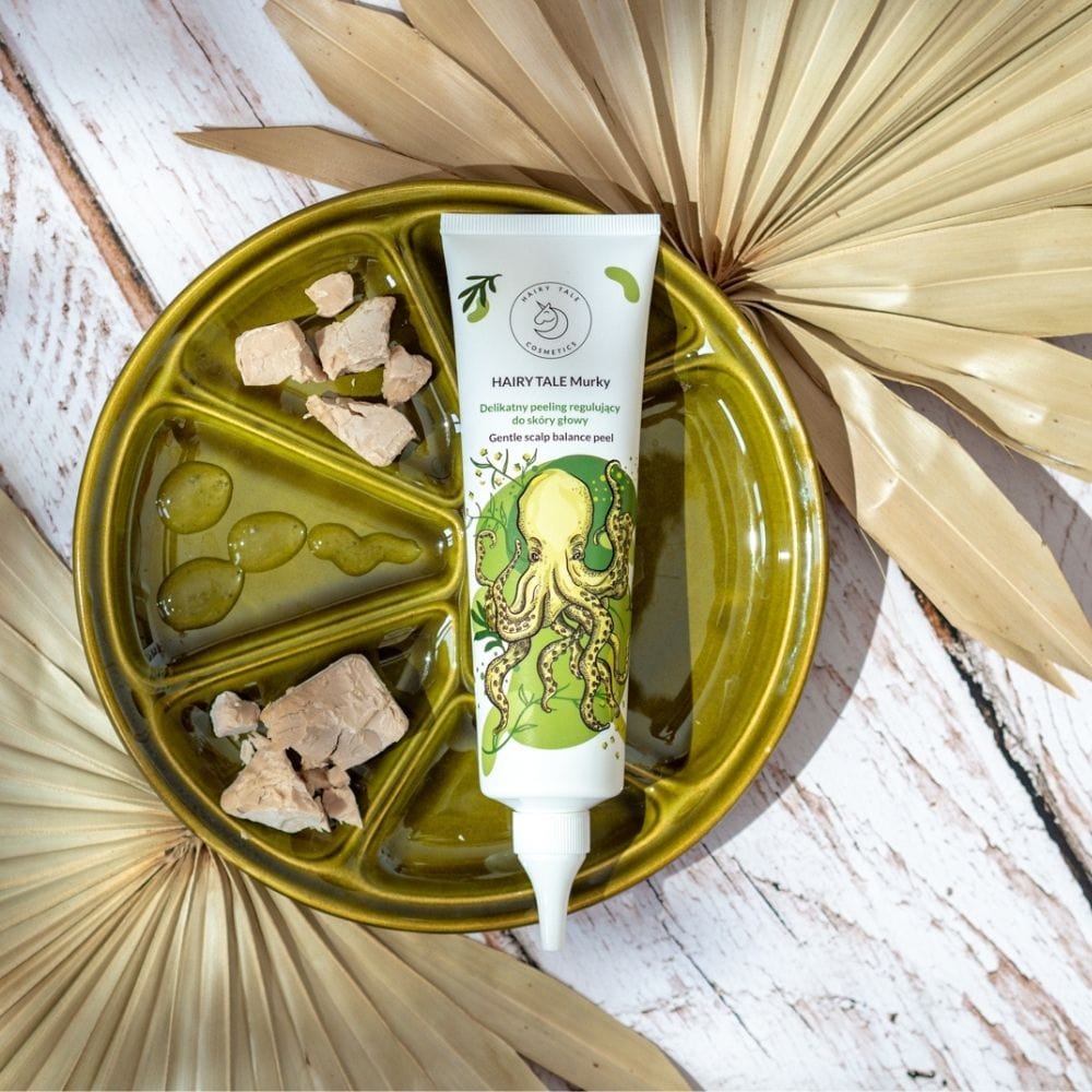 Hairy Tale Cosmetics Murky ist ein sanftes, regulierendes Kopfhautpeeling, das zu Fettigkeit und Schuppen neigende Haut effektiv reinigt und beruhigt . Die Formel mit Azeloglycin, Wermut und Hefeextrakt reguliert die Talgproduktion und stellt das Gleichgewicht der Kopfhaut wieder her. Die Geltextur ermöglicht eine einfache Anwendung, während feuchtigkeitsspendende Inhaltsstoffe für ausreichende Feuchtigkeitsversorgung sorgen.
