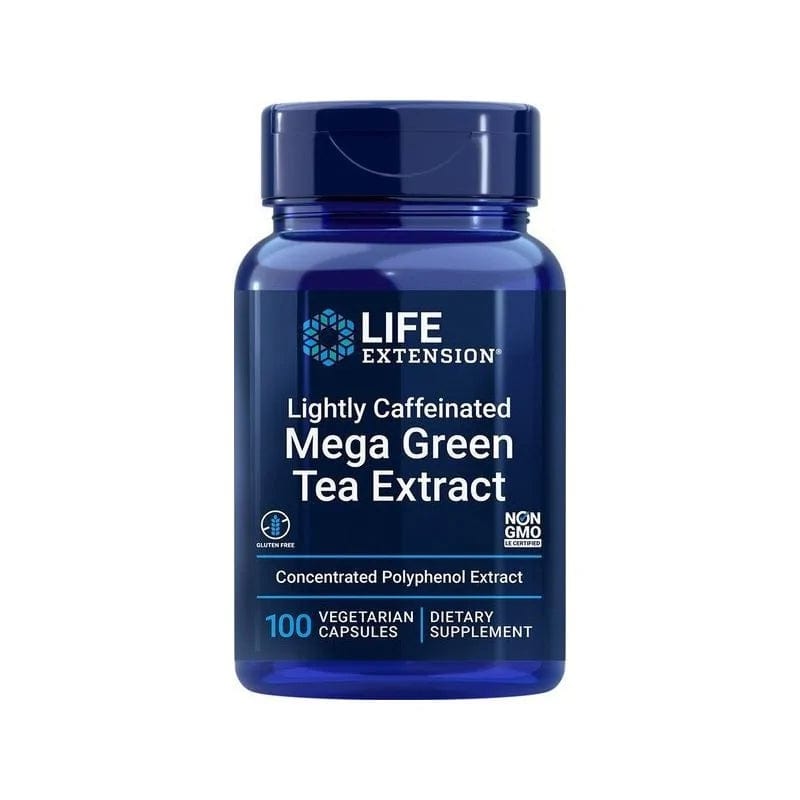 Der Mega-Grüntee-Extrakt von Life Extension ist ein Nahrungsergänzungsmittel in Kapseln, das 725 mg standardisierten Grüntee-Extrakt mit 98% Polyphenolen pro Tagesportion enthält.