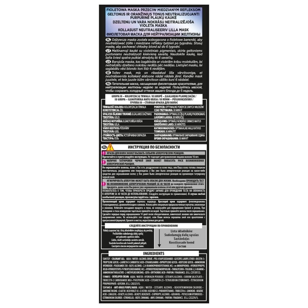 Farbgel: Aqua/Wasser, Trideceth-2 Carboxamide Mea, Propylenglykol, Hexylenglykol, PEG-2-Oleamin, Polyglyceryl-4-Oleylether, Oleylalkohol, Alcohol Denat., Ammoniumhydroxid, Polyglyceryl-2-Oleylether, Ölsäure, Natriumdiethylaminopropylcocoaspartamid, 2,4-Diaminophenoxyethanol HCl, m-Aminophenol, 2-Amino-3-Hydroxypyridin, Natriummetabisulfit, Hydroxypropylbis(N-Hydroxyethyl-P-Phenylendiamin) HCl, Eugenol, Ammoniumacetat, Linalool, p-Phenylendiamin, Alpha-Isomethylionon, Resorcin, EDTA, Citronellol, Erythorbinsäure, Parfum/Duftstoff. (FIL C201769/1).