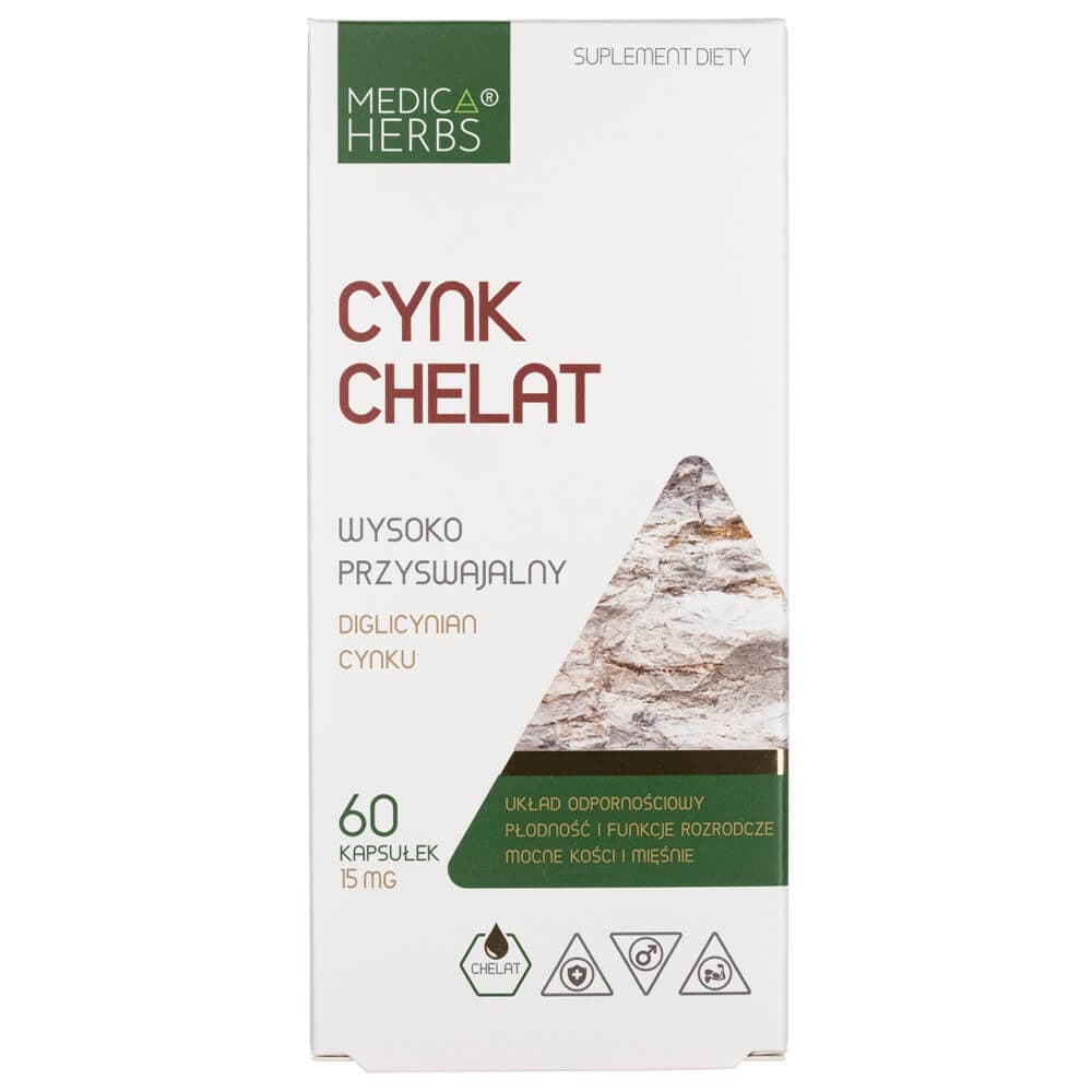 Zinkchelat ist ein Nahrungsergänzungsmittel in Kapselform von Medica Herbs, das Zinkdiglycinat enthält. Zink in Chelatform ist gut absorbierbar und wird vom Körper gut vertragen.