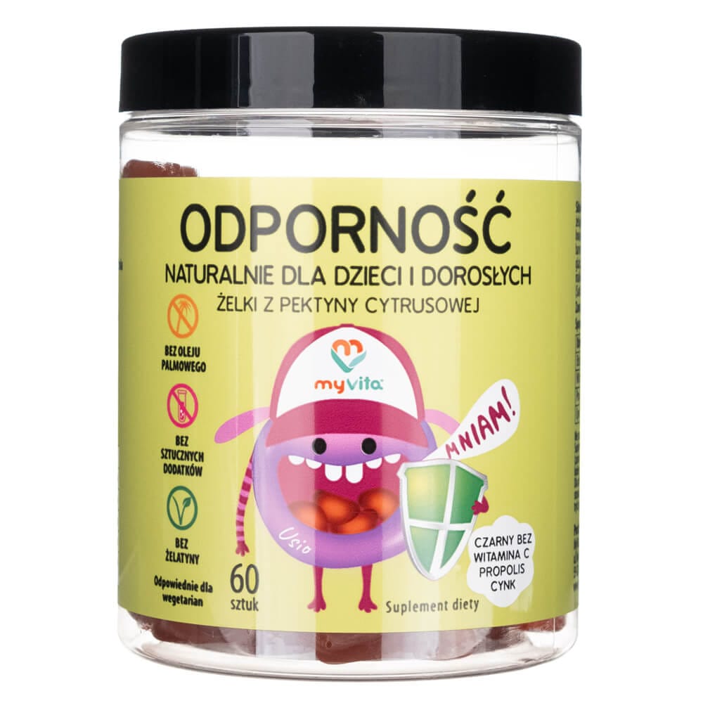 MytVita Immunity ist ein Nahrungsergänzungsmittel in Form natürlicher Zitruspektingele, geeignet für Kinder und Erwachsene. Die in den MyVita-Gelen enthaltenen natürlichen Inhaltsstoffe garantieren einen köstlichen Geschmack und eine ausreichende Portion an Vitaminen und anderen Nährstoffen, um das reibungslose Funktionieren des Körpers zu unterstützen. Die Gele enthalten eine innovative Immuno Protect-Mischung bestehend aus Holunderextrakt, Propolis, Zink und Vitamin C.