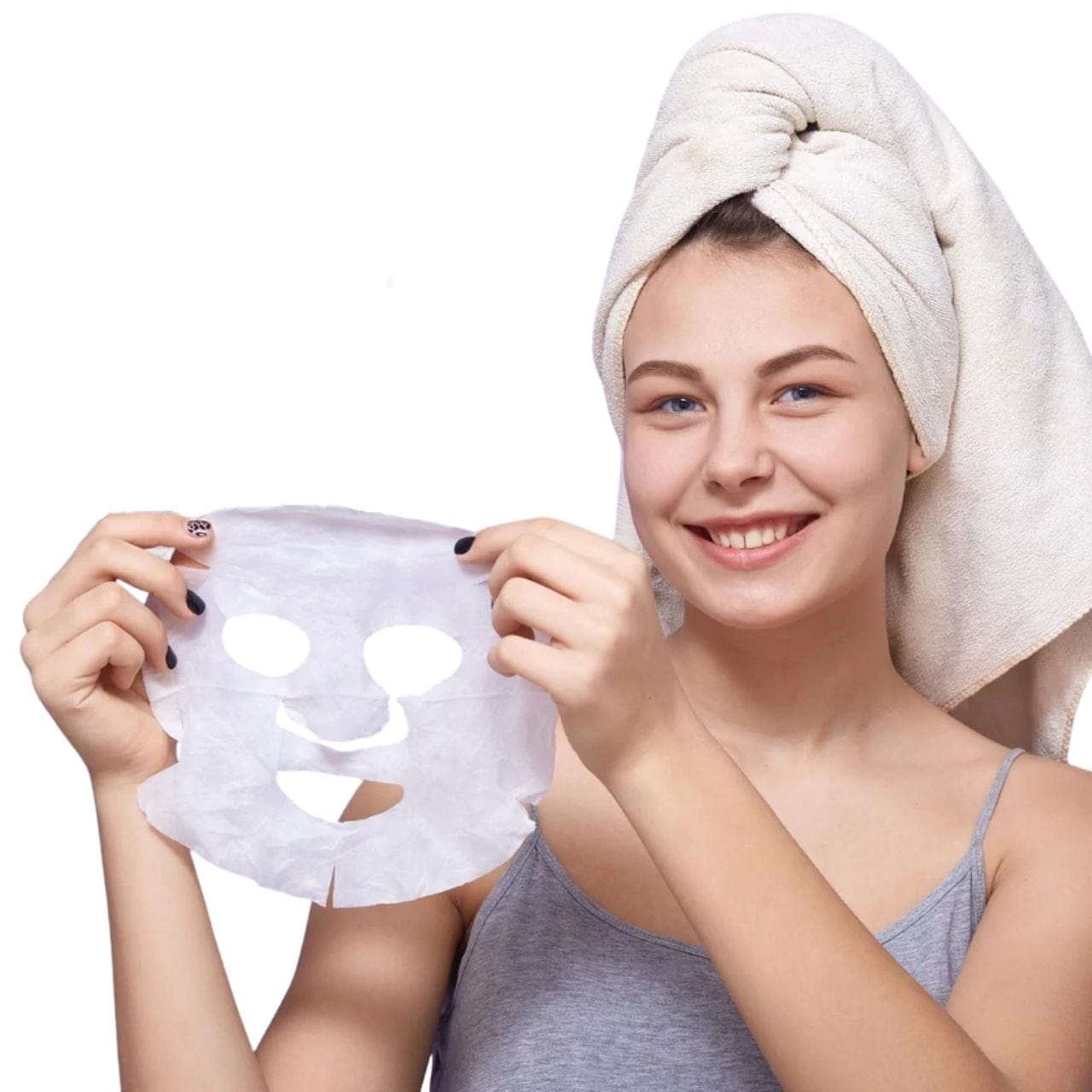 Die Maske auf die gereinigte und tonisierte Haut auftragen und die Aussparungen für Augen und Mund anpassen. 10–20 Minuten einwirken lassen, anschließend entfernen und die restliche Essenz sanft in die Haut einklopfen, bis sie vollständig eingezogen ist.