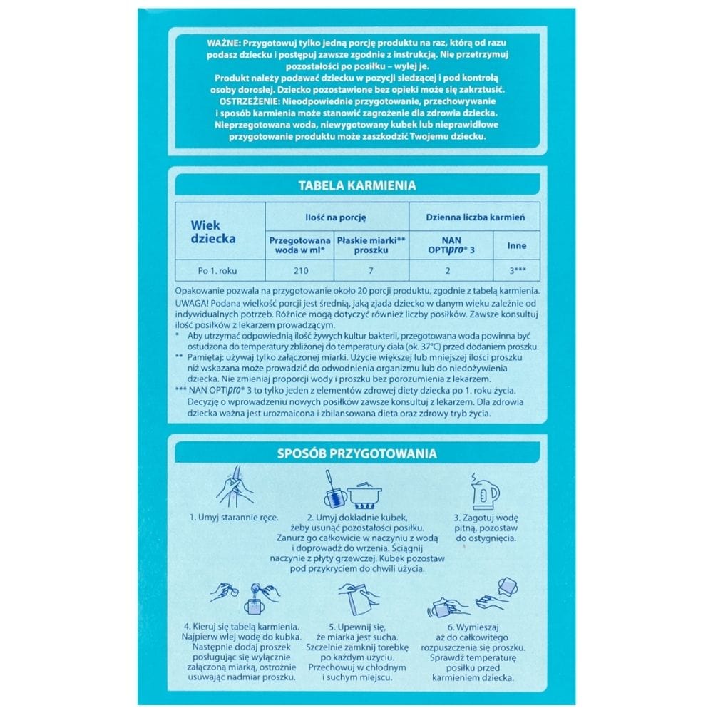 NAN OPTIpro 3 ist ein Milchprodukt für Kleinkinder. Angereichert mit Vitaminen und Mineralstoffen. Es ist kein Ersatz für Muttermilch, sondern ein Produkt , das speziell für Kinder ab einem Jahr entwickelt wurde .