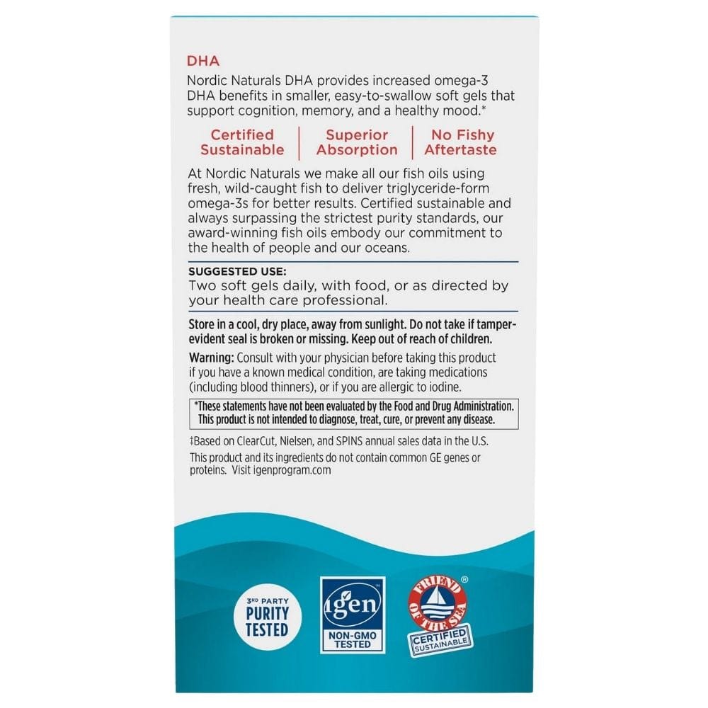 Nordic Naturals DHA ist ein Nahrungsergänzungsmittel in Gelkapseln. Die Formel enthält 830 mg Omega-3 , darunter bis zu 480 mg DHA (Docosahexaensäure).