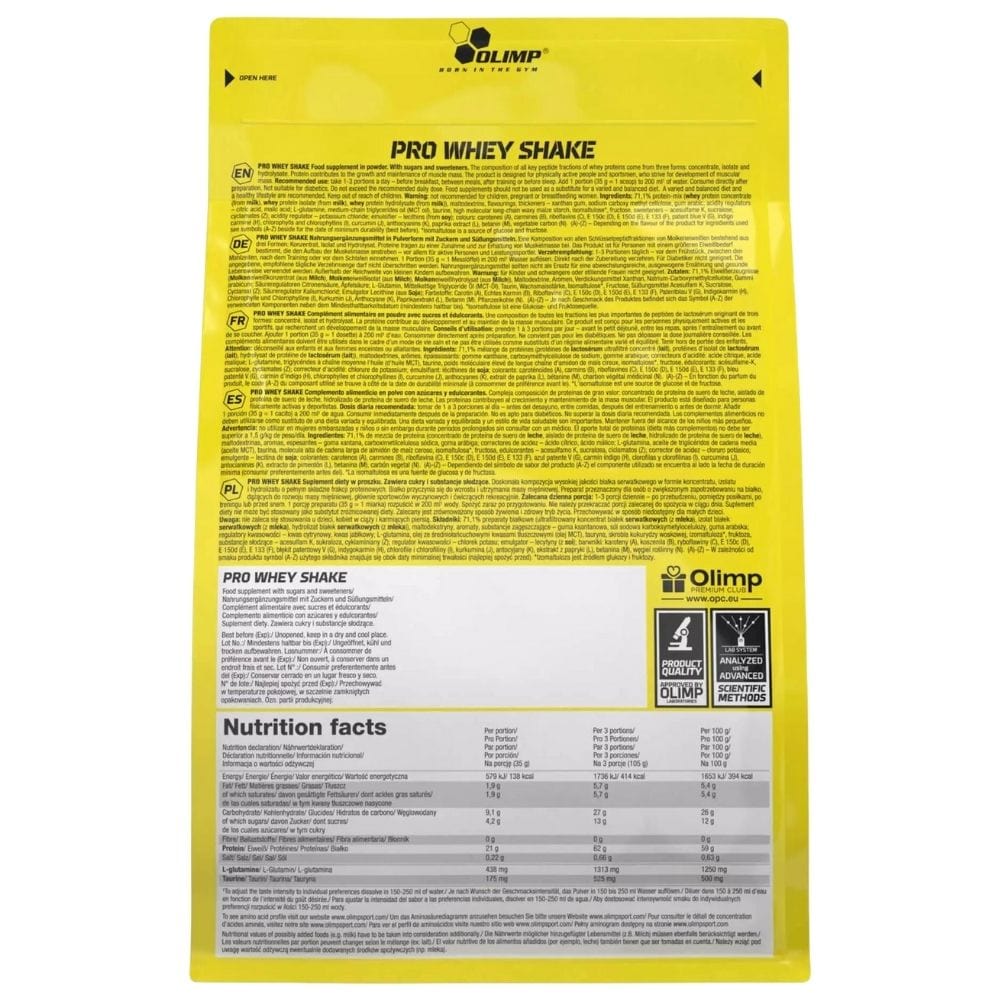Olimp Pro Whey Shake ist ein Nahrungsergänzungsmittel in Pulverform. Ein Proteinpräparat für Menschen mit erhöhtem Proteinbedarf, die Muskelmasse aufbauen möchten, vor allem Leistungssportler und Freizeitsportler. Es kombiniert drei Proteinquellen: Molkenhydrolysat, Molkenisolat und Molkenkonzentrat.