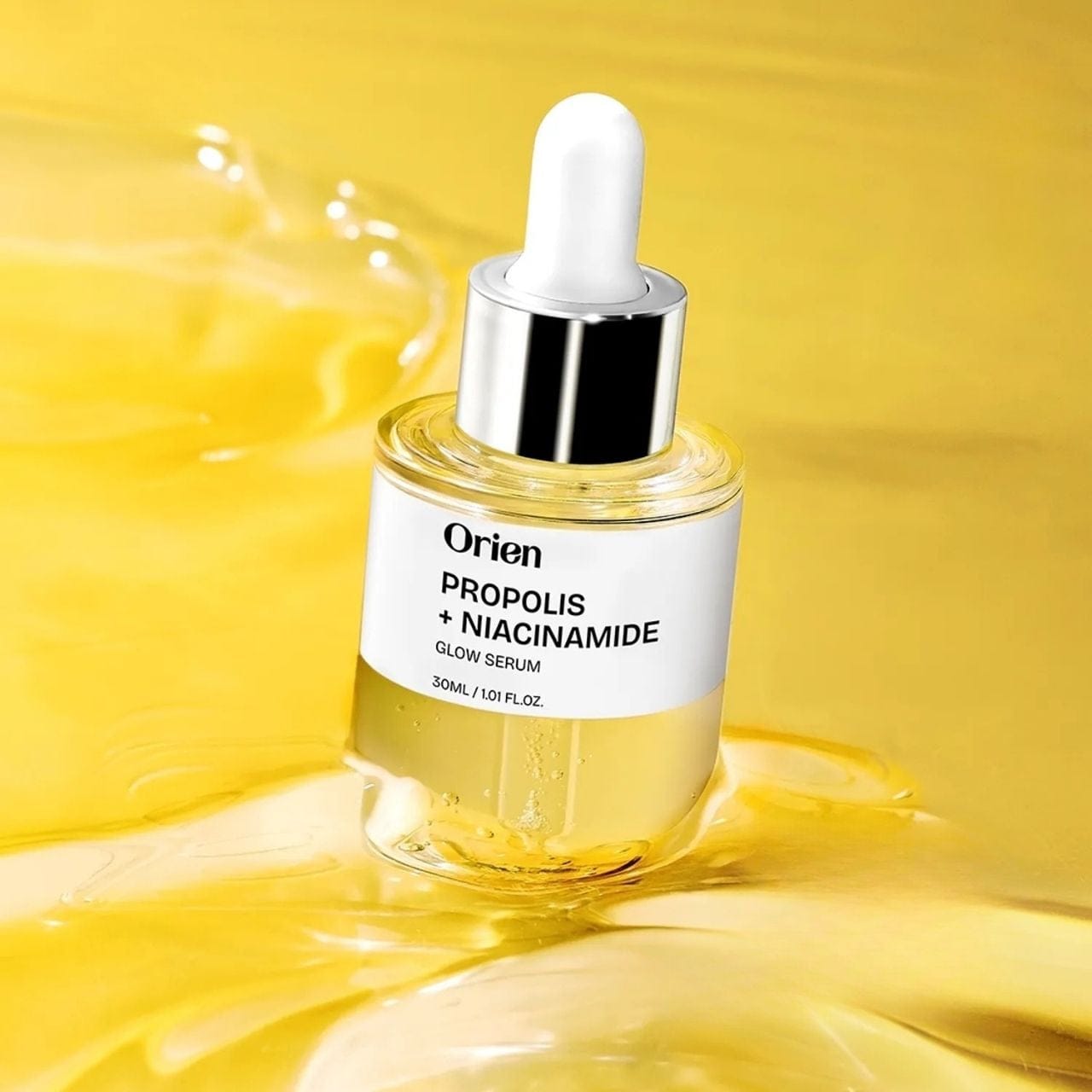 Das Orien Propolis Niacinamide Glow Serum ist ein multifunktionales, aufhellendes Serum, das speziell für fahle, müde Haut mit ungleichmäßigem Teint entwickelt wurde. Seine leichte, wasserbasierte Formel zieht sofort ein und hinterlässt keinen klebrigen Film.