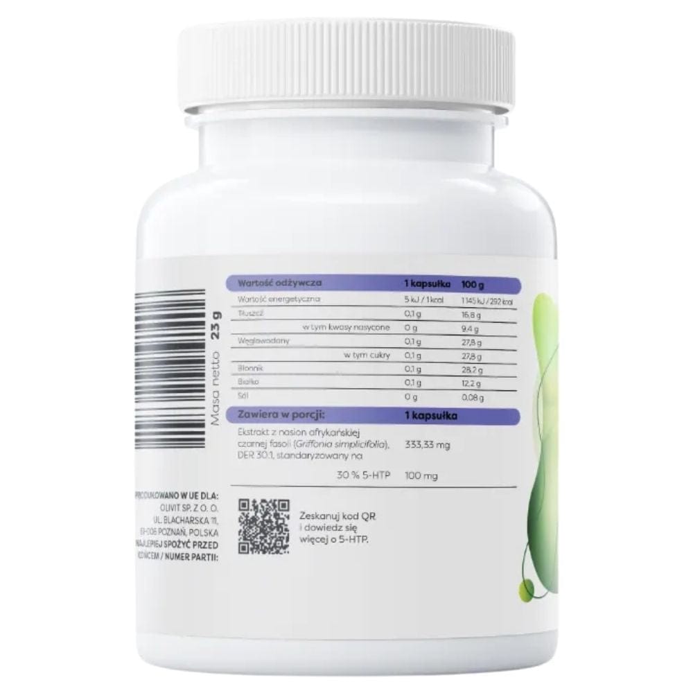 Osavi 5-HTP ist ein Nahrungsergänzungsmittel in Kapselform. Es enthält einen auf 5-HTP (5-Hydroxytryptophan), einen Vorläufer von Serotonin, standardisierten Extrakt aus schwarzen Bohnensamen .