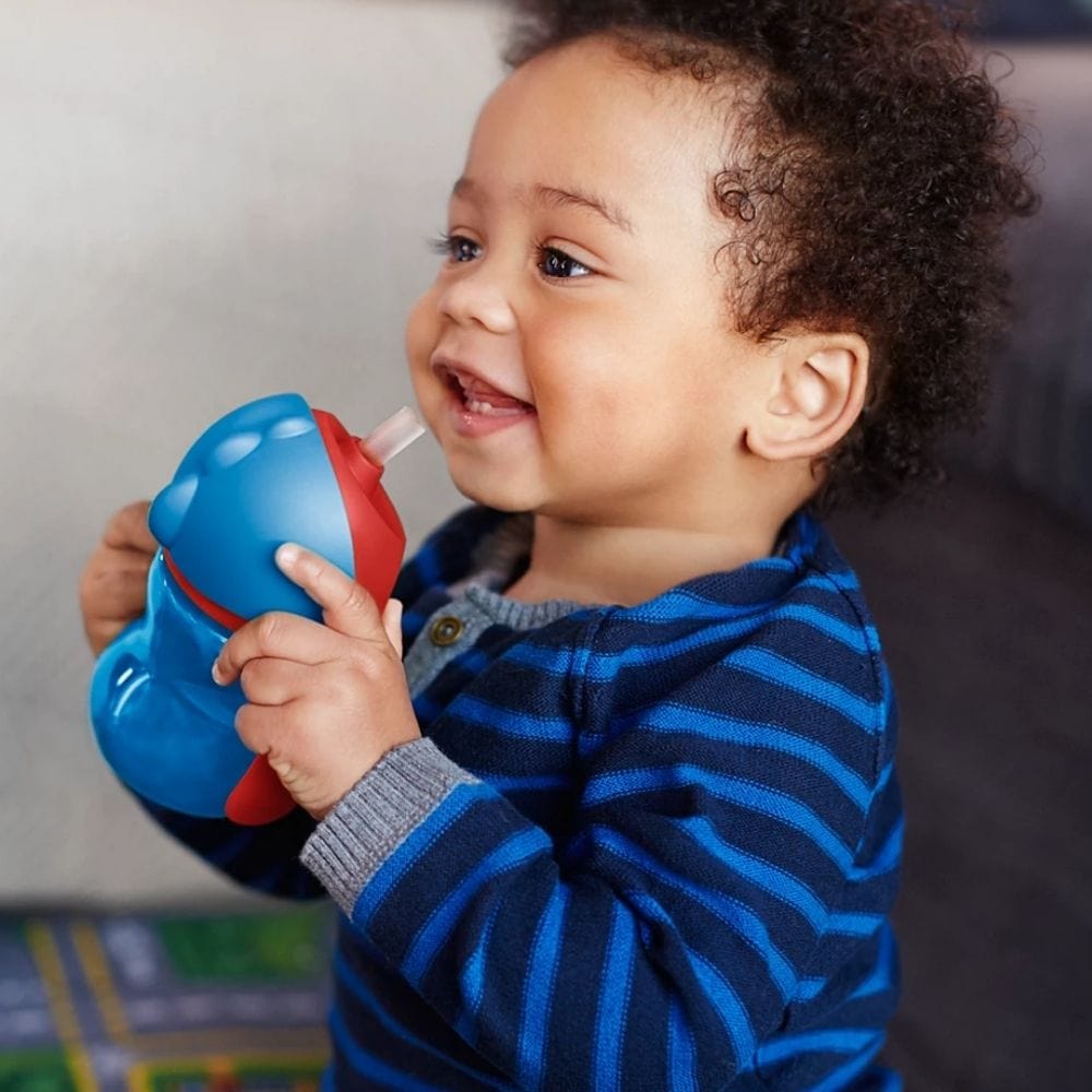 - Regelmäßiges Üben – Bieten Sie Ihrem Kind bei verschiedenen Gelegenheiten einen Becher mit Strohhalm an, damit es diese Fähigkeit üben kann.