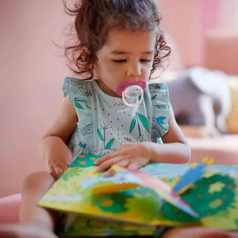 Der Schnuller befriedigt das natürliche Saugbedürfnis von Babys. Geeignet für Kinder von 6 bis 18 Monaten, bietet er Geborgenheit und Sicherheit und unterstützt gleichzeitig die richtige Mundentwicklung. Der kiefergerechte, symmetrische und weiche Silikonsauger ist so geformt, dass er die natürliche Entwicklung von Gaumen, Zähnen und Zahnfleisch Ihres Babys berücksichtigt.