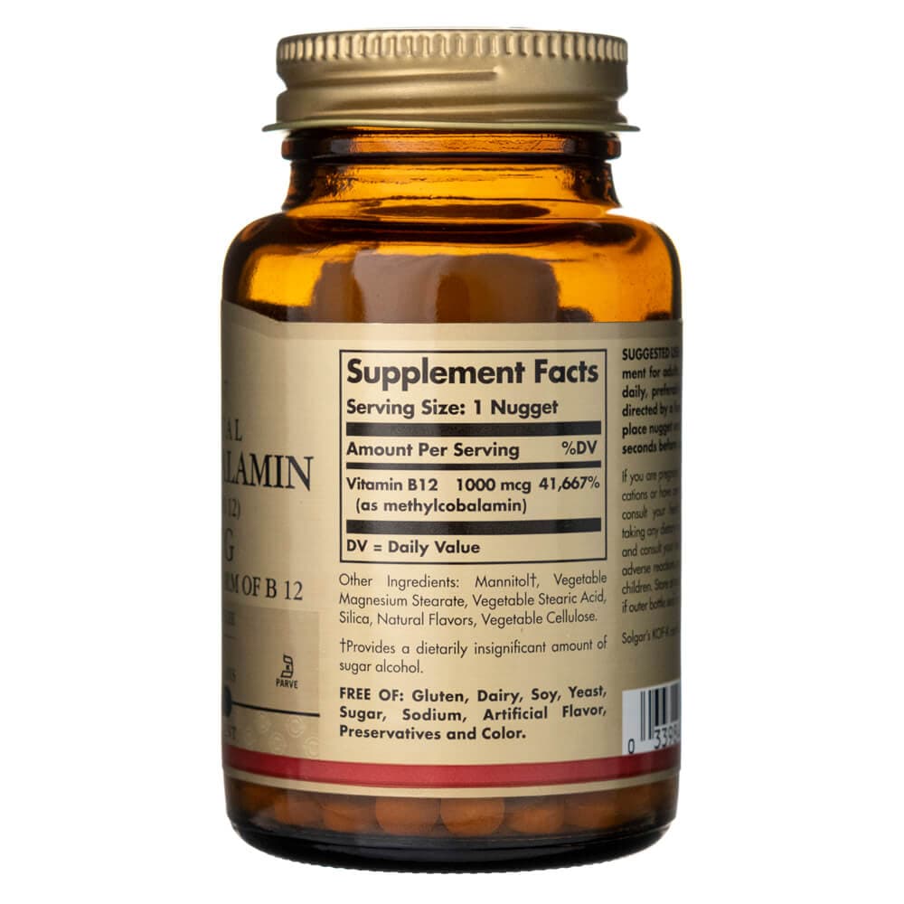 Solgar® Methylcobalamin-Nuggets enthalten eine für den Körper aktive Form von Vitamin B12. Schichtarbeiter, Studenten, Mütter und ältere Menschen können dieses Ergänzungsmittel zur Unterstützung des Energiestoffwechsels verwenden.