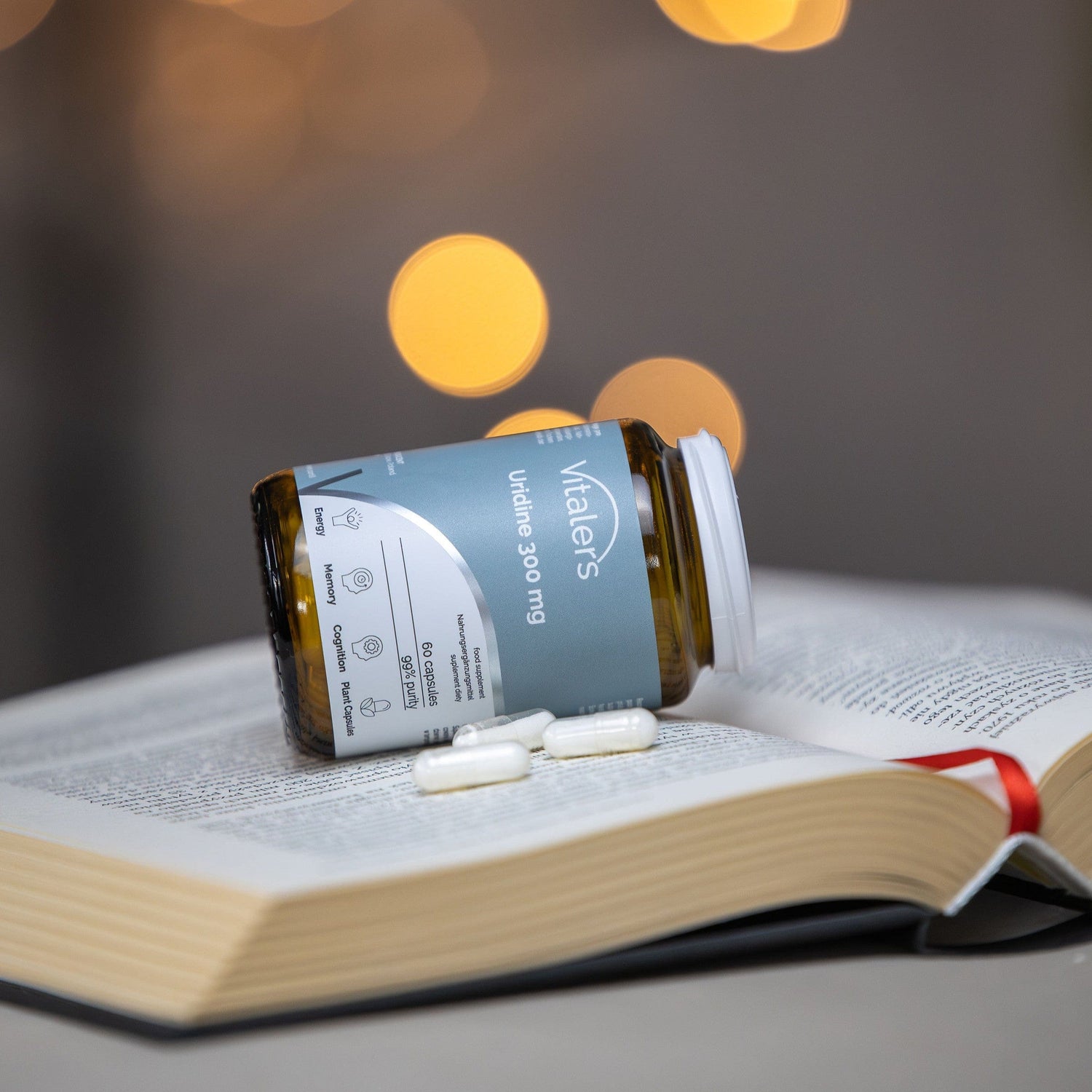 Uridine von Vitaler's ist ein Nahrungsergänzungsmittel mit 300 mg Uridinmonophosphat. Uridinmonophosphat gilt als wichtiger Faktor für die Funktion des Nervensystems . Uridin kommt natürlicherweise in Fisch, Brokkoli, Petersilie und Rinderleber vor.