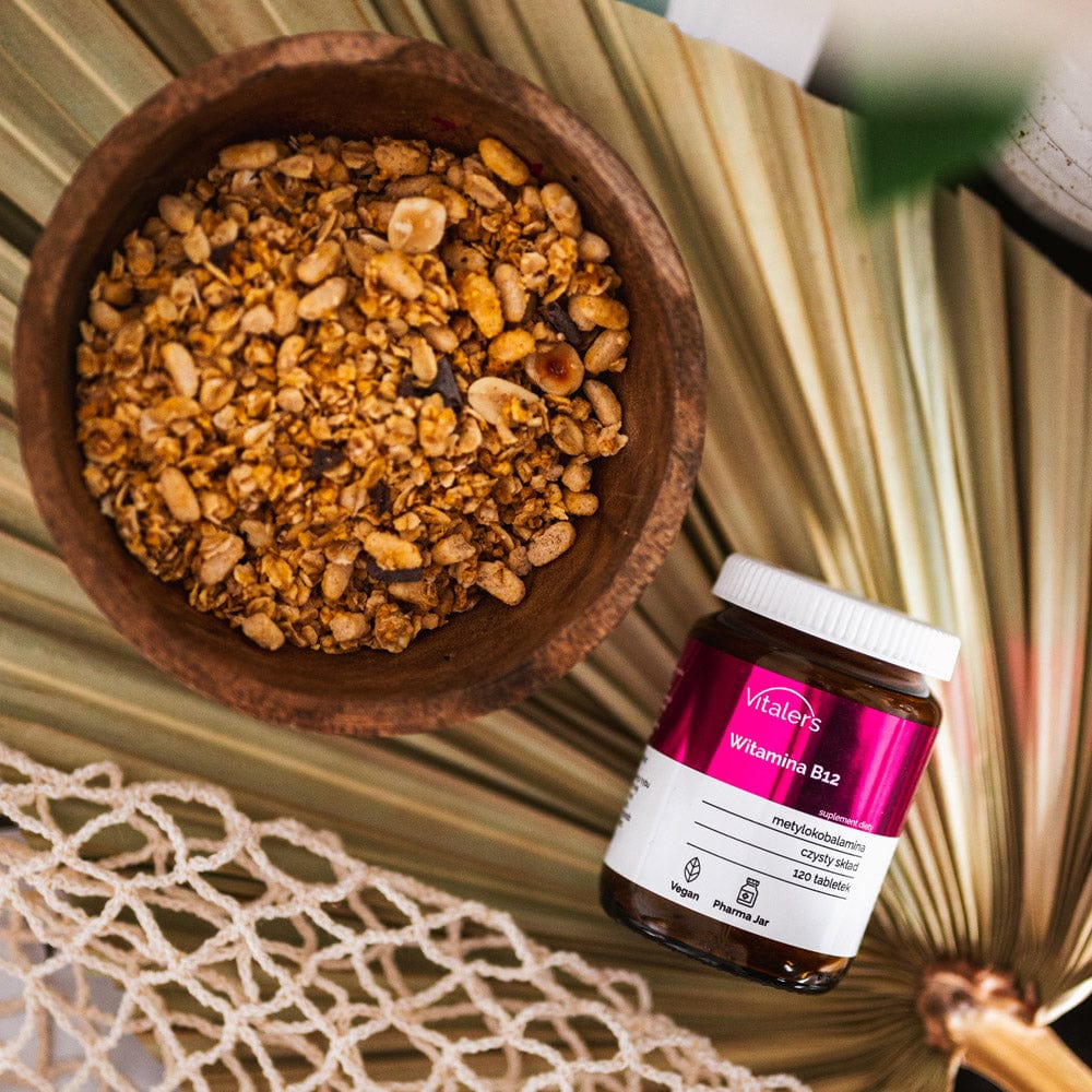 Methylcobalamin ist eine Form von Vitamin B12, die sich durch eine schnellere Absorptionsrate auszeichnet und länger im Körper verbleibt (im Gegensatz zu Cyanocobalamin). Methylcobalamin ist die biologisch aktive Form von Vitamin B12, weshalb es auch für Menschen empfohlen wird, die mit einer gestörten Absorption von Nicht-Methyl-Formen des Vitamins (a zu kämpfen haben, die am häufigsten in Nahrungsergänzungsmitteln zu finden sind). Vitamin B12 trägt zur Bildung roter Blutkörperchen bei und wirkt sich auf das Nervensystem, aus, wodurch das Gedächtnis und die Konzentration verbessert werden. Die Hauptquelle für Vitamin B12 sind tierische Produkte, weshalb Vitamin B12 besonders für Menschen empfohlen wird, die sich vegan oder vegetarisch ernähren. Vitaler's Vitamin B12 ist frei von inaktiven und völlig unnötigen Zusatzstoffen.